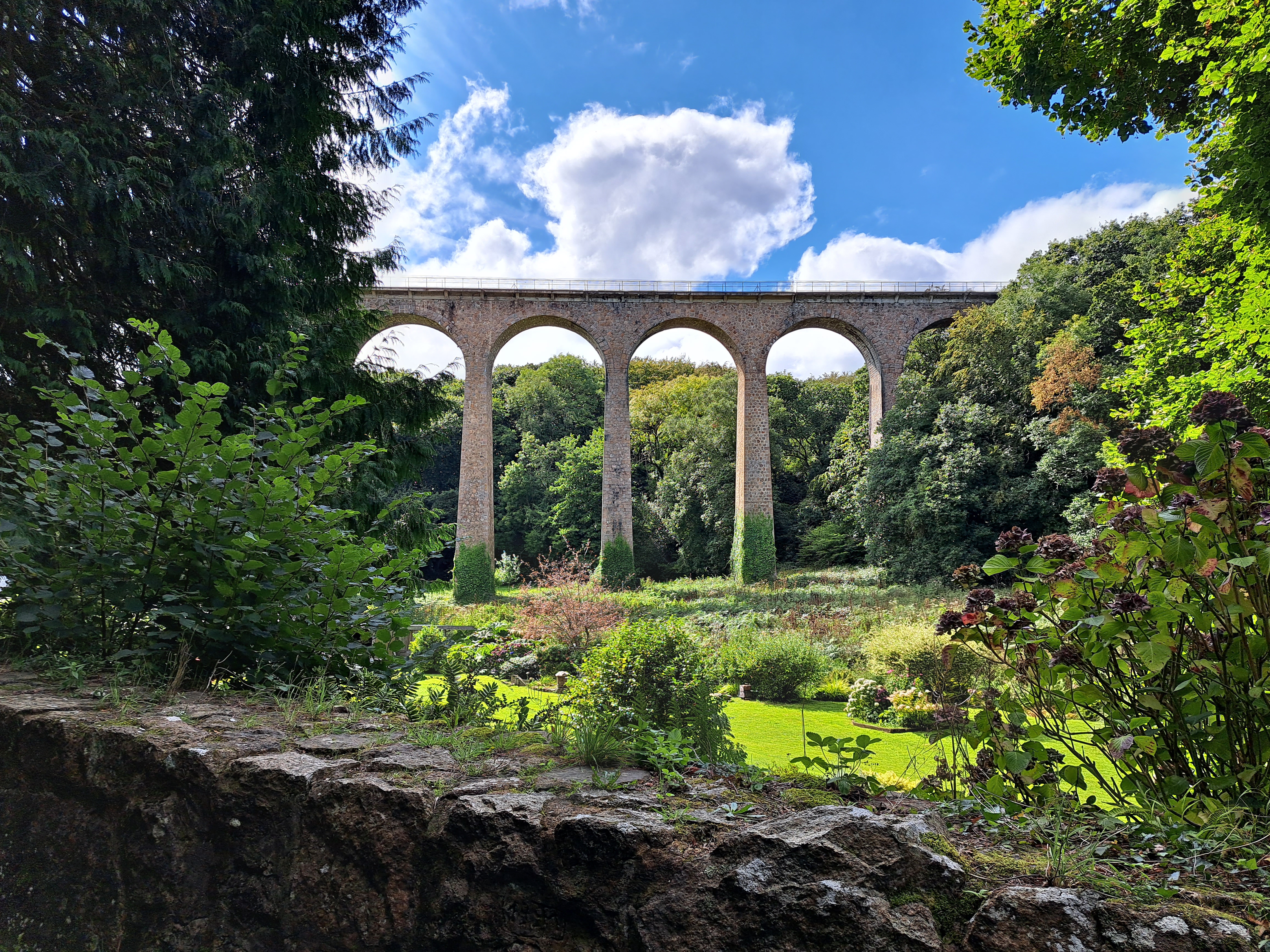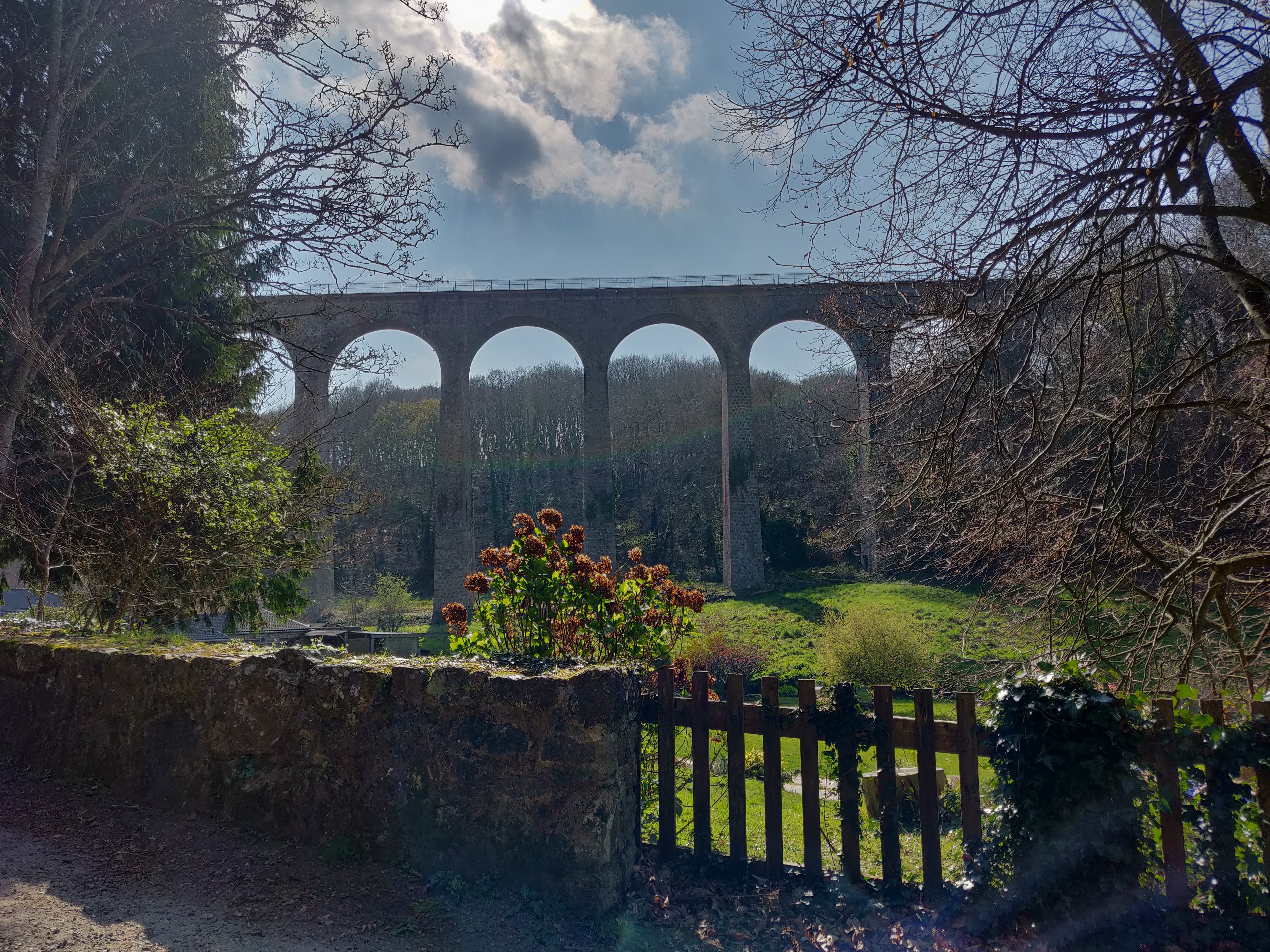 Le viaduc traverse la vallée des Moulins et ponctue une promenade facile, charmante et très agréable.