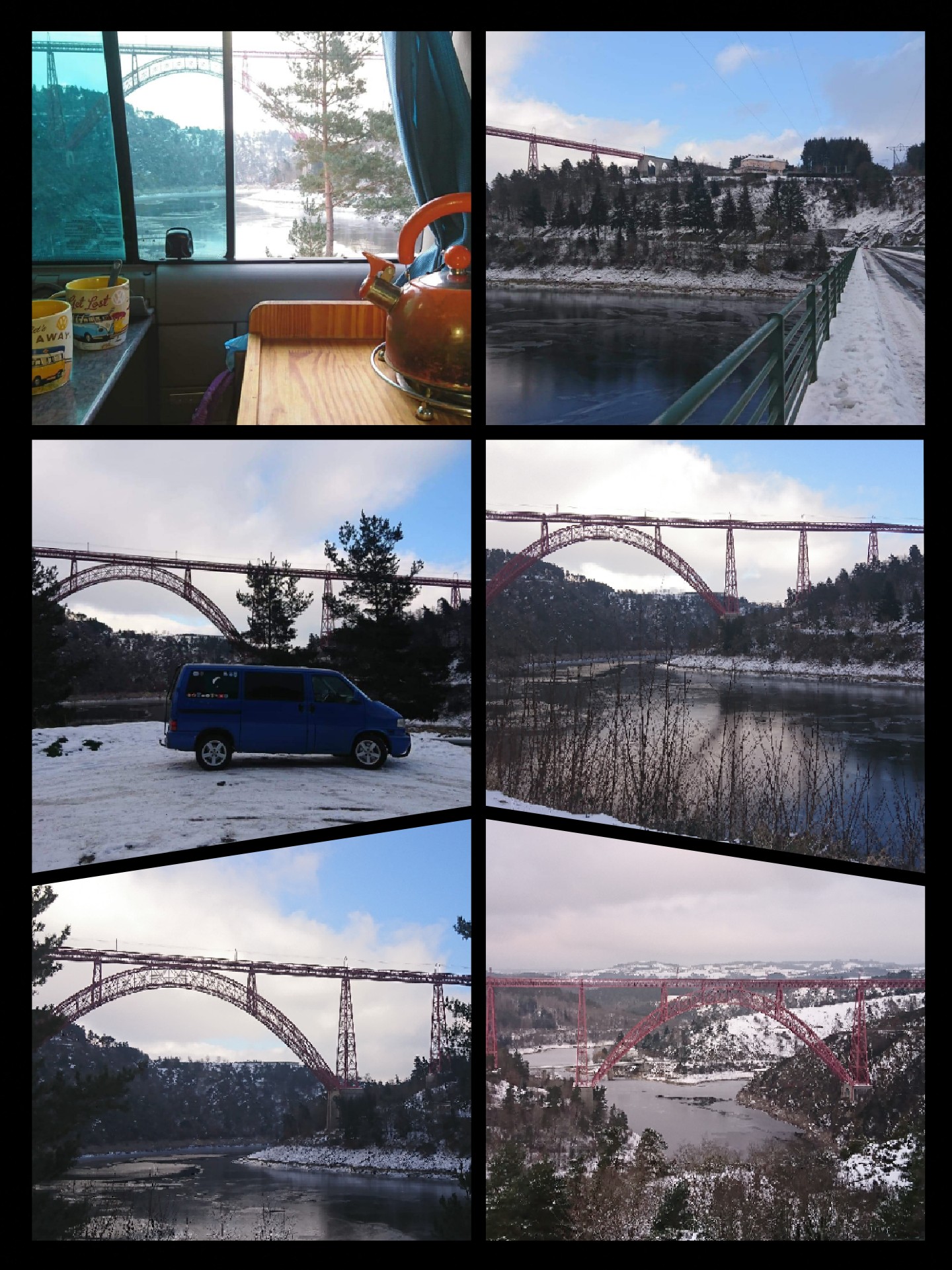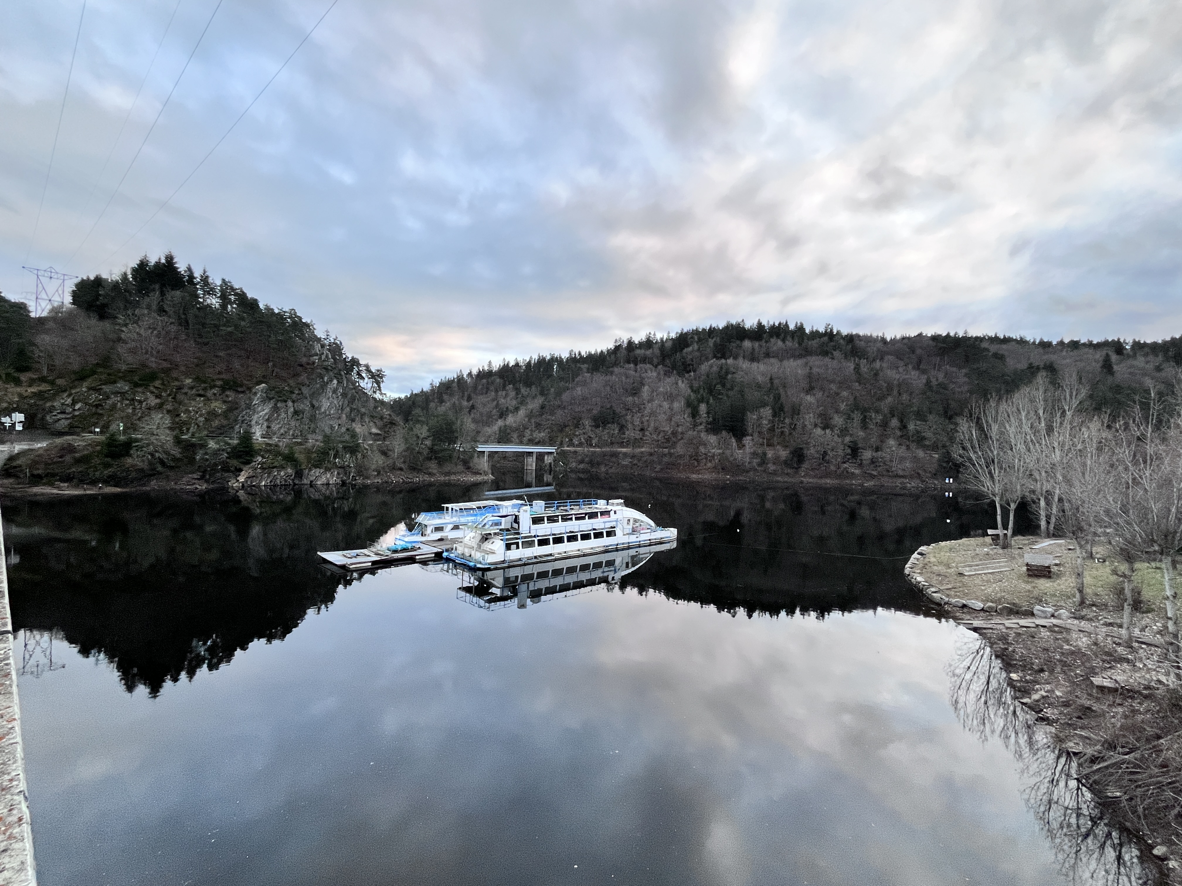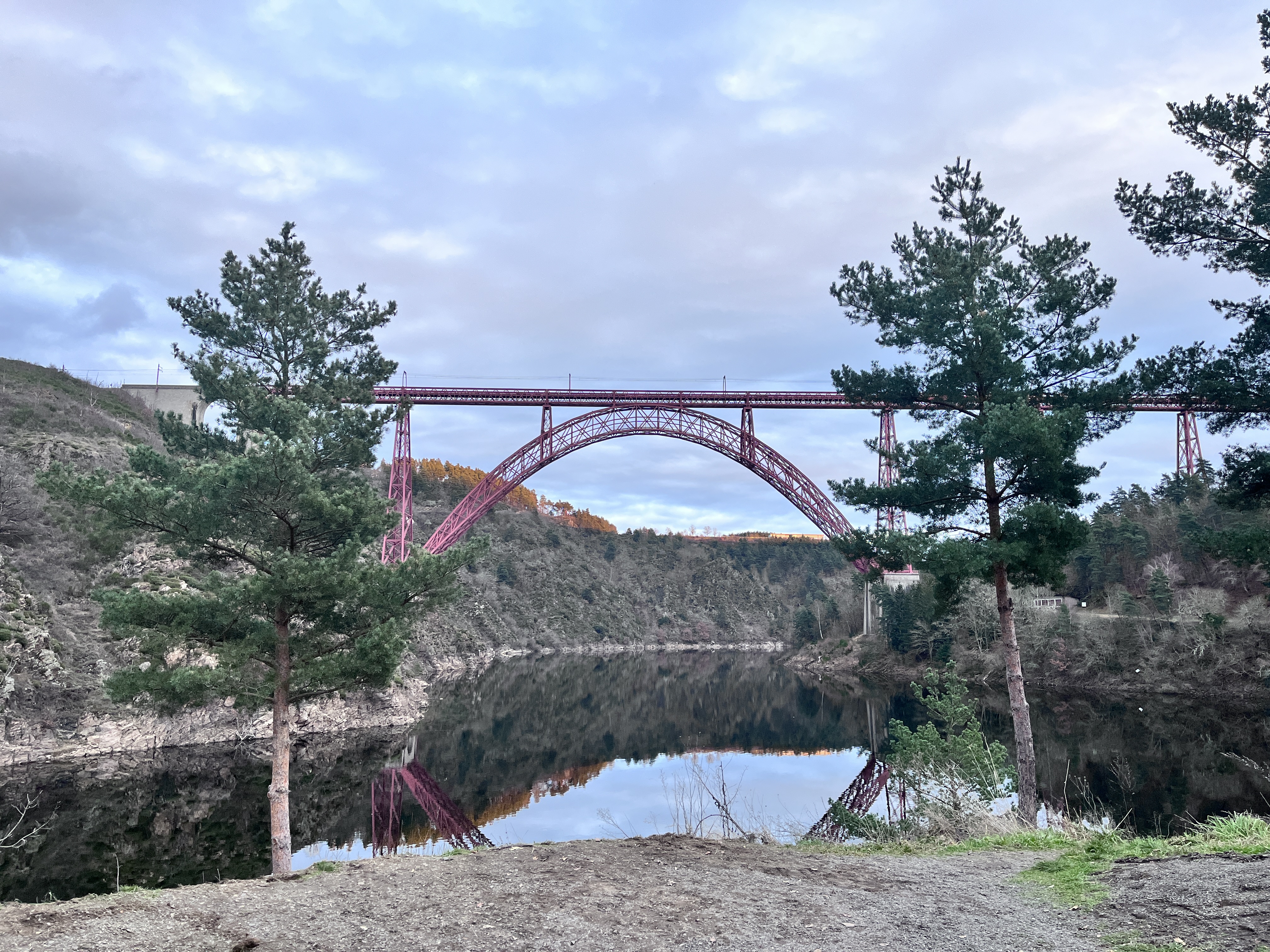 Excellent endroit pour s'arrêter en voiture avec un très beau point de vue sur l'ensemble du viaduc de Garabit, malgré quelques sapins qui gênent un peu la vue sur les côtés. Il n'y avait plus beaucoup d'eau dans la Truyère fin décembre et les bords des gorges étaient par conséquent très caillouteux, mais ça n'enlève en rien à la majesté du viaduc.