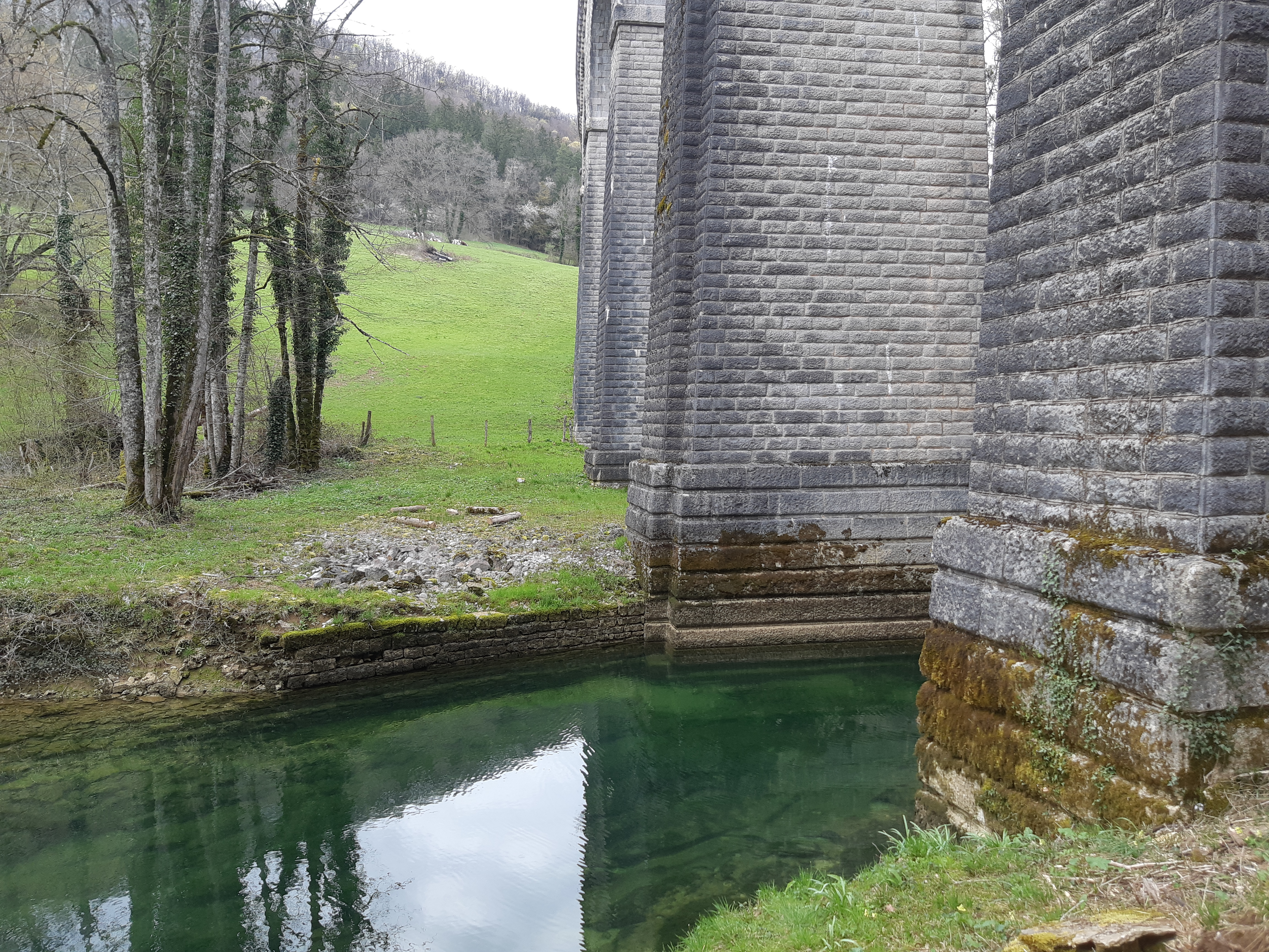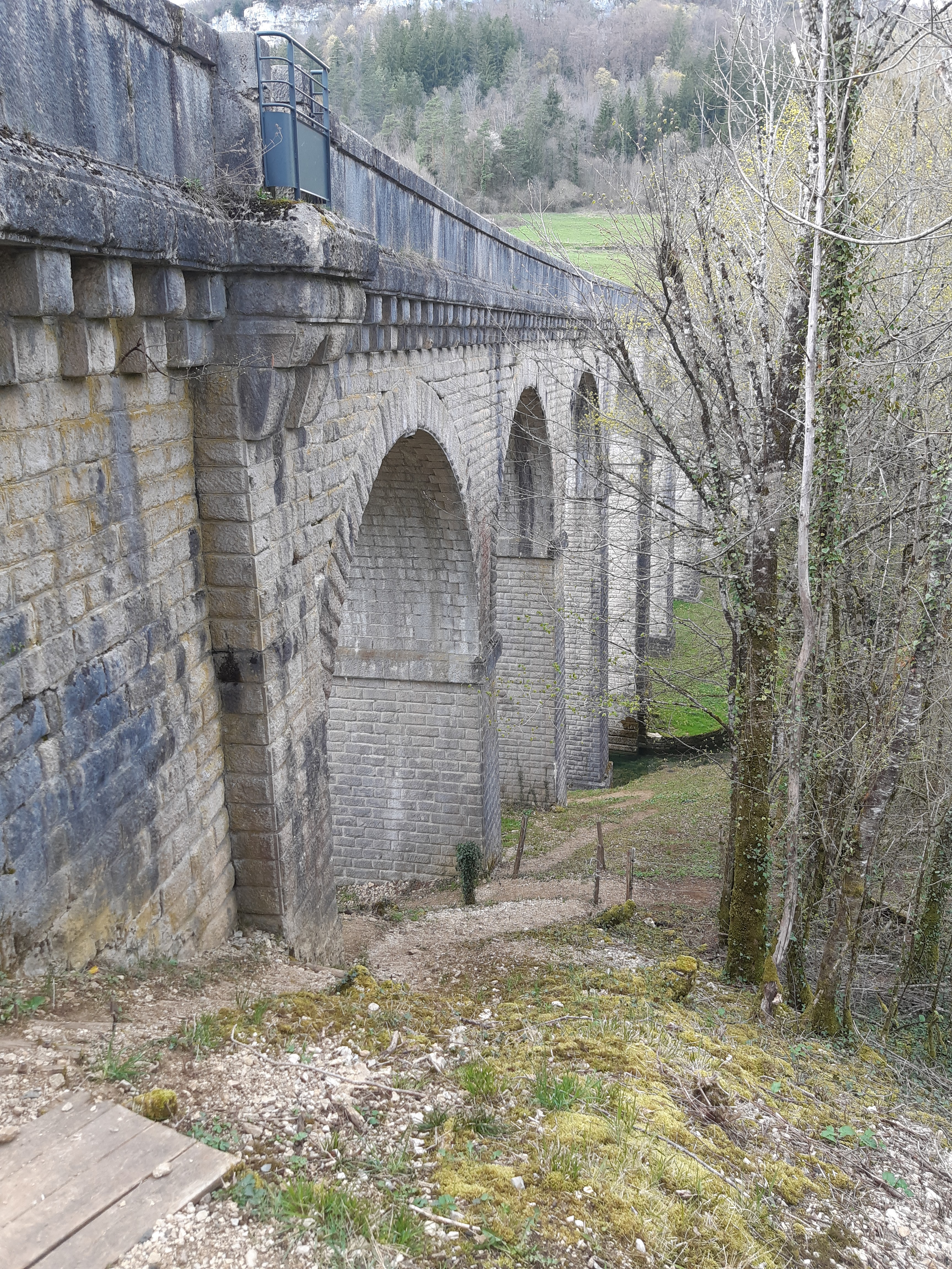 Ouvrage courbe de 181m de long, constitué de 13 arches, il permettait à la l’ancienne ligne ferroviaire « Hôpital-du-Grosbois-Lods via Ornans » d’enjamber la vallée de la Brême. Il est surplombé par le rocher sur le Grand, lieu d’escalade renommé. D’une hauteur de 25m à la verticale du ruisseau de la Brême, il est désormais utilisé comme piste cyclable.